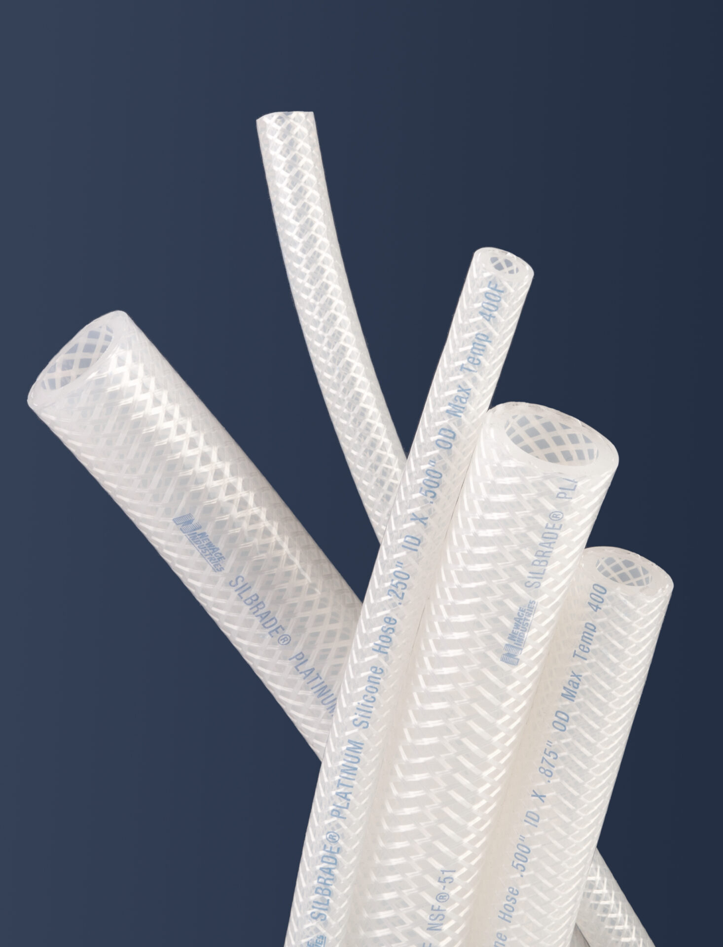 - Open mesh polyester braiding incorporated within walls of silicone offers increased pressure capabilities